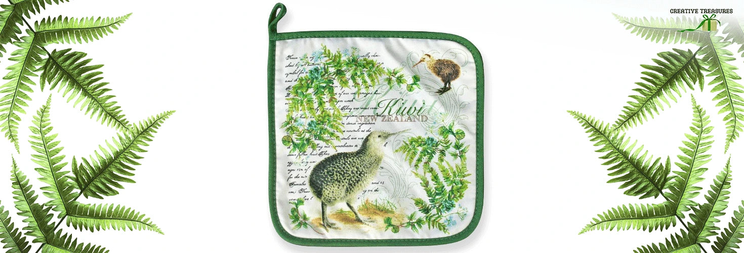A pot mat designed with kiwi bird artwork offers both heat resistance and decorative appeal, making it a useful tool in the kitchen. People need protection for surfaces when handling hot pots, and such mats often become a staple in daily cooking. New Zealand souvenirs of this type combine safety with cultural imagery.