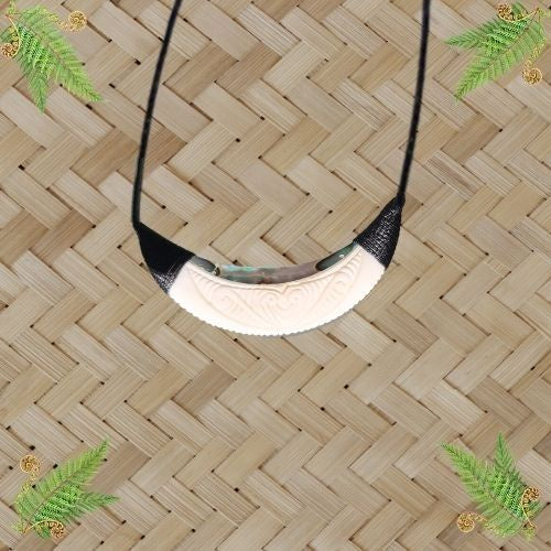 Bone Twist Engraved Pendant with Paua. The Twist depict two new shoots growing together, and represents the joining of two people in love or friend...