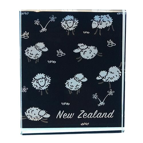 New Zealand Sheep Crystal Glass Paperweight. Comes in a white satin lined black presentation box. Size (mm): 60L x 20W x 70H.