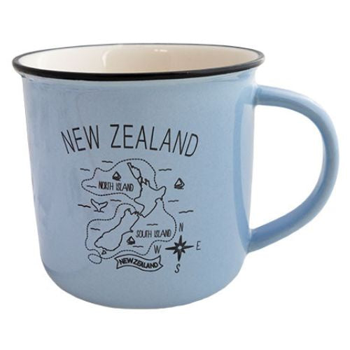 NZ Map Downunder Mug - Blue. Ceramic. Size 9 H x 10cm D.