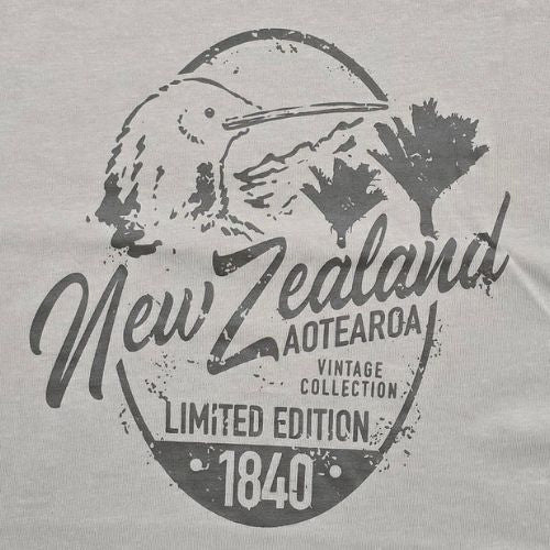 Adults NZ Kiwi Tee - Light Grey. Cotton t-shirt. Light Grey with printed logo. New Zealand themed Tee Shirt. A great souvenir or gift from New Zeal...
