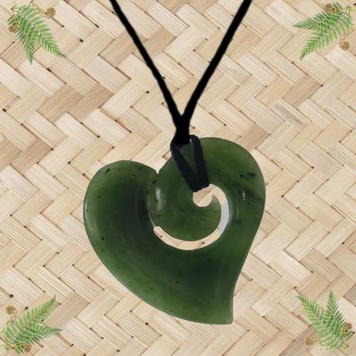 NZ Greenstone Heart Koru Pendant - 35mm.