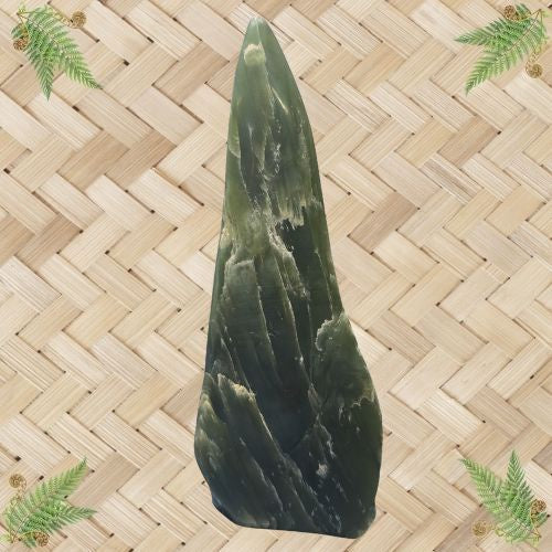 NZ Greenstone Polished Rock - Peak. Size Approx 150 H x 55 W x 35mm D. We photograph each piece but a slight colour variation may occur.