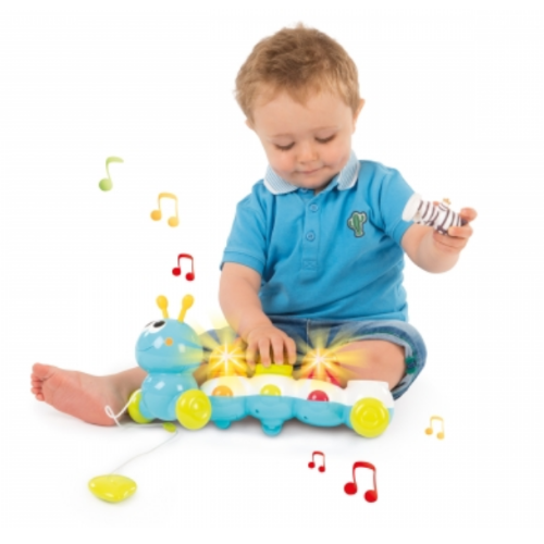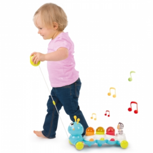 This musical caterpillar to pull is perfect for the colours learning! If your toddler puts the balls on the right colour, light and sound (several melodies) effects will trigger : it will amuse your little one!