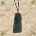 This design represents the Toki or Adze ("adz" in American English) which was used to carve the great canoes and also to cut and work timber for the fortresses or Pahs in which the Maori lived.